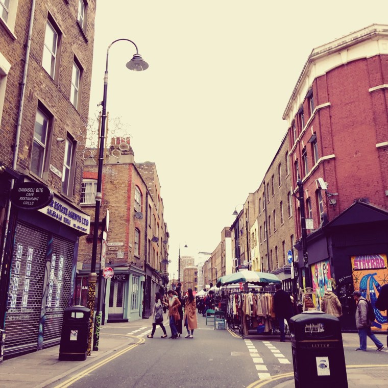 Brick Lane – one of my favourite places, full of great food smells, fabulous shops and markets and by night a great place to drink and buy bagels.
